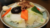スープは、大山鶏と国産豚肉をミンチにしてダシを取ります。かつお節・干しエビ・さば節・昆布などの魚介をダシを合わせます。