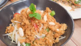ひっくり返してから、生地をふた代わりにして蒸します。特製の中華そばは、油を入れてパリパリにします。