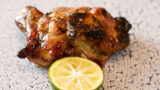 一度煮たあなごをもう一度煮たあなごと表面を焼き上げた焼きあなごのセットです。ご飯の上にはシソの葉がのっています。