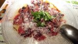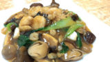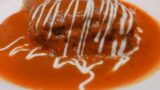 「黒酢の酢豚」は、豚のバラ肉を2時間煮込んで揚げています。中国の高級黒酢で炒めています。