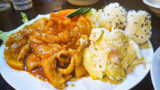 仕上げに卵を1個落としてからひっくり返して、中まで火を通しています。お値段は、100円です!