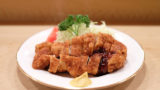「」は、孔子のカツをサクッと揚げています。約10種類の食材を煮詰めて作ったオリジナルトマトソースに入れて煮ます。