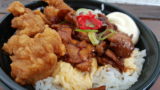 「三種盛り」は、豚の三枚肉を煮込んだチャーシューです。もやしとキムチを添えたらチャーシューを盛りつけます。