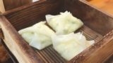 ダシには、すりおろしたタマネギとリンゴ酢を入れます。ニラと卵を回し入れたら、赤味噌と白味噌を溶かします。それが母の味です。