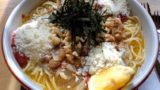 しょう油と味噌をブレンドしたお店特製のスープをかけたら完成です。お値段は、650円です!